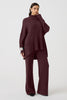 Featuring a softly structured high neck, dropped shoulders, and deep rib detailing across the cuffs and hem. The front is finished with a subtle curved hemline for added shape and coverage.